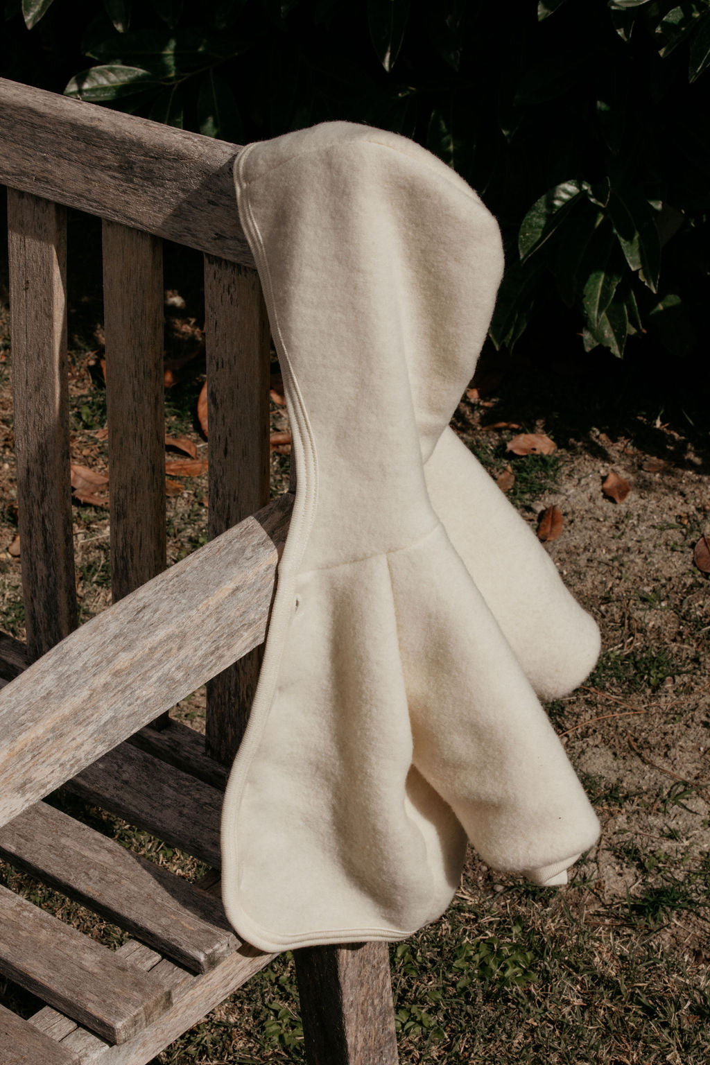 La lana merino crea un microclima que mantiene al bebé cómodo todo el año: cálido en invierno y fresco en verano.