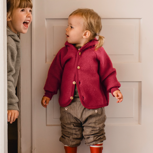 Chaqueta de 100% lana virgen orgánica (certificación IVN BEST), suave, transpirable y naturalmente termorreguladora.
