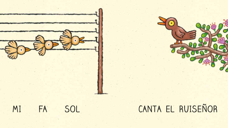 Entonando las notas musicales con las diversas aves que se acercan a este original pentagrama, repleto de sonidos.